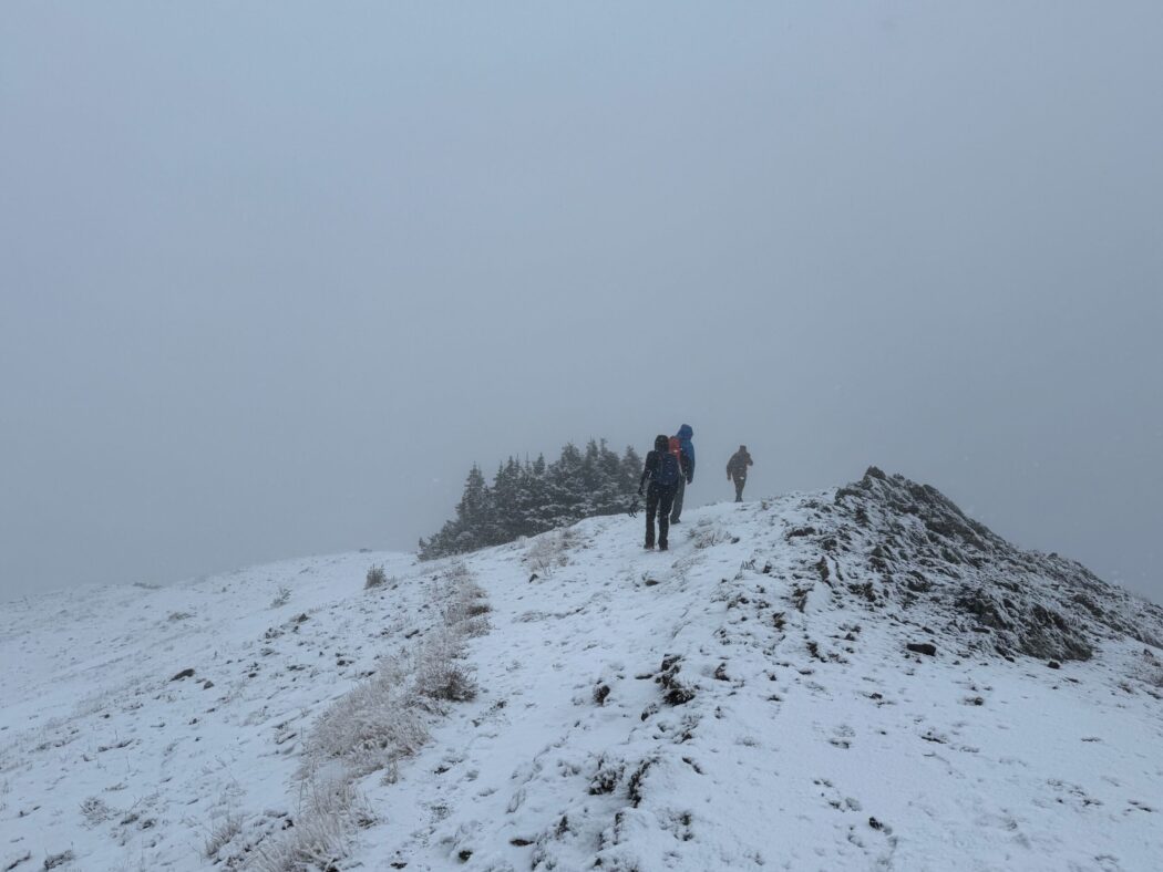 - on this day, we started in a light drizzle that turned to snow near the summit, where there was limited visibility, which impaired any sort of view